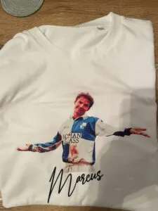 The group have paid all expenses themselves and that includes all of them purchasing one of our Marcus Stewart T Shirts which they will wear during their three day walking holiday!