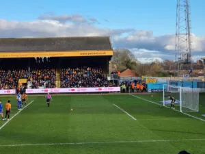 So, we started this vital period of fixtures away to Cambridge United, leaving The Mem at 8:10am. Heading towards London, we stopped at South Mimms services for 50 minutes and then headed for the M11. With news of an accident ahead of us, we diverted off the motorway, certainly taking some roads that we haven’t been on before! Firstly, skirting past Stanstead airport, then passing through some picturesque villages and seeing some massive stately homes!