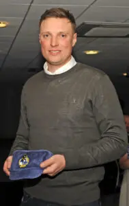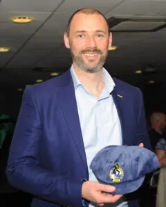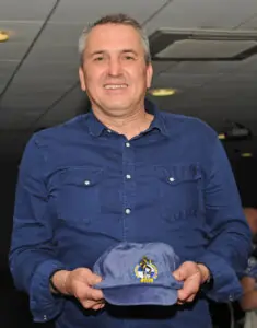 When the cap initiative was set up, the Supporters Club asked if anyone would like to sponsor any of the presentations. Current Treasurer of the Supporters Club, Clive Marshall, agreed to sponsor Gary Smart’s cap and was on hand to make the presentation.
