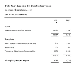 Bristol Rovers Supporters Club Share Purchase Scheme Income and Expenditure Account Year ended 30th June 2025