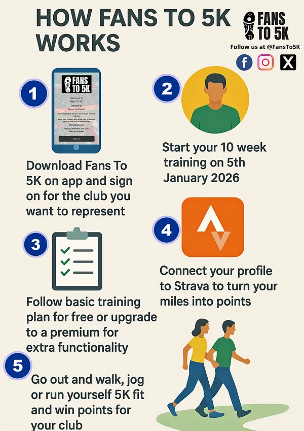Fans To 5K fits around what you already do — giving you extra structure, motivation and purpose on the days you’re not in the centre.