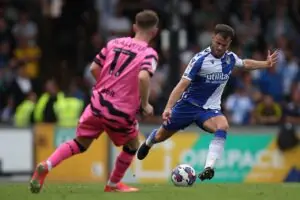 That they weren’t was down to goalkeeper James Belshaw and the woodwork. The overworked Rovers keeper’s two best saves came from efforts by Reece Brown and Jamille Matt, while it was an effort from Matt that hit the post with Belshaw making a despairing dive to his right.
