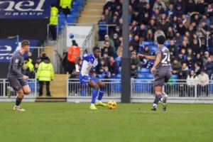 ‘I’m disappointed. Listen, I didn’t think we started the game well. For the first 20-25 minutes, I think we looked tired. Probably a repercussion of the efforts that the boys put in last Saturday and Tuesday, because we had to go to the wire to win both of them. I think Chesterfield were far better than us for the first 25 minutes. The goal was a poor goal for us to concede. We lost the man in the middle of the goal; it was just a simple defensive error. The boy has put his hand up in the dressing room, and then we got the goal back. It was a well worked goal and a good header from Shaq; it’s all to play for. Second half, we were good, we tweaked it a little bit, and we went in front.