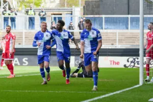 There might have been a third goal before the break but Riley Harbottle but he failed to convert from a Shaq Forde cross. The visitors created very little in the first half, in spite of enjoying a great deal of possession and might have pulled a goal back through Dion Pereira but be blazed his shot high over the bar.