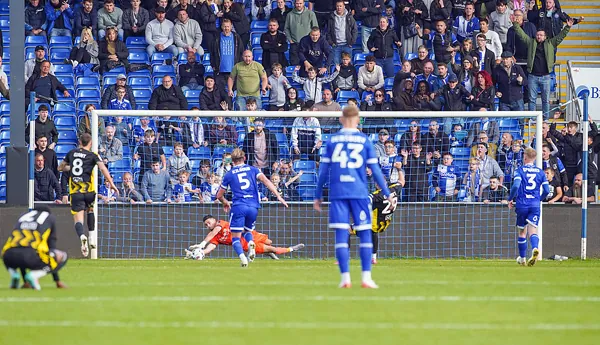 ‘I don’t know where to start to be honest with you. I thought we were poor in the first half but we got the goal just before half-time which gave us a boost. We had a bit of a change of things around at half time and I thought the second half was a lot better. Credit to the boys, and the whole group as well. It was lovely to see the seven players we’ve got injured there on the side cheering the boys as they’ve come off the pitch. That is proper togetherness. We needed that in abundance today because Salford City are a really good team. You can see how well they’re doing with Karl and the form they are in, and we had to dig in and I don’t think we’ll get many games like that at the end with the penalty save.