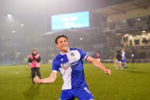 ‘If you keep clean sheets, you can’t lose a game. With Alfie Kilgour and Riley Harbottle and beside me – they have got experience, they are constantly communicating with me and helping me out, and hopefully, I am doing the same, helping them out. I think the past few games have shown that we are sticking together, and that we are working as a unit, and we are keeping those clean sheets.’ Rovers Goalscorer Kofi Balmer