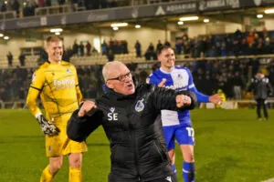 ‘We all know that this Football Club should not be in League Two, it’s absolutely scandalous, but you are where you are for a reason, and that’s on the pitch. So, we have to go forward, we have to take a point or three points on Saturday and make it a really good week. So far, we’ve got to Tuesday night, and it’s been a good week, but we don’t want it to be a not so good week on Saturday night. The fans have been incredible. You felt it when Yusuf goes through, there was an eerie silence if you listen to it and watch the footage, because they are waiting for it. I never had a minute’s doubt about what Yusuf would do. Yusuf stuck it in the net, and the noise levels went through the roof. Then, when Kofi’s went in, it was even more so.’ Rovers’ Head Coach Steve Evans