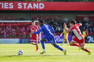 A Shaq Forde shot was pushed on to the bar by home keeper Joe Wollacott, but just as it seemed as though the ten men would head into the break on level terms, Crawley took the lead in what was the ninth minute of first half added time when Scott Malone’s drive took a deflection off of Alfie Kilgour and ended up in the back of the net.