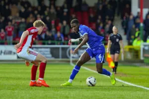 ‘I had to just be patient and just wait so I could get into the game, and then I think it was Ellis who took a quick free kick to me, and I thought just let me go at it, go towards the goal and see what I can create, and thankfully I scored my first goal for Bristol Rovers, and it was a great feeling especially in such a big, momentous game – it felt great. I don’t think anyone was ahead of me at the time, so I just thought, let me just take it on myself, see if I can cut in and score as I did.”