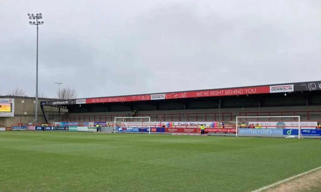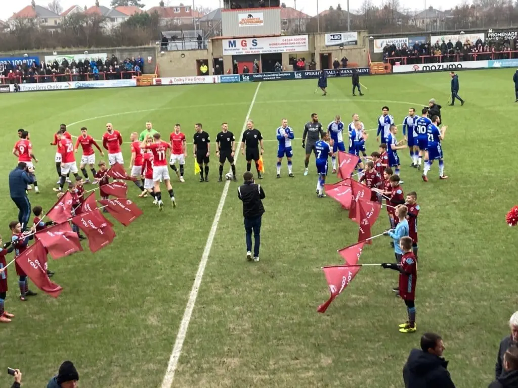 Morecambe: Ripley, Rawson (Delaney, 65), Bedeau, Simeu, Love, Shaw, Weir, Gibson (Cooney, 89), Crowley (Hunter, 73), Mellon (Mayor, 73), Stockton.