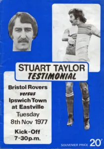 Stuart was awarded a testimonial match by Rovers and they played against Ipswich Town on 8th November 1977 at Eastville, when a crowd of 4,670 saw a goalless draw.